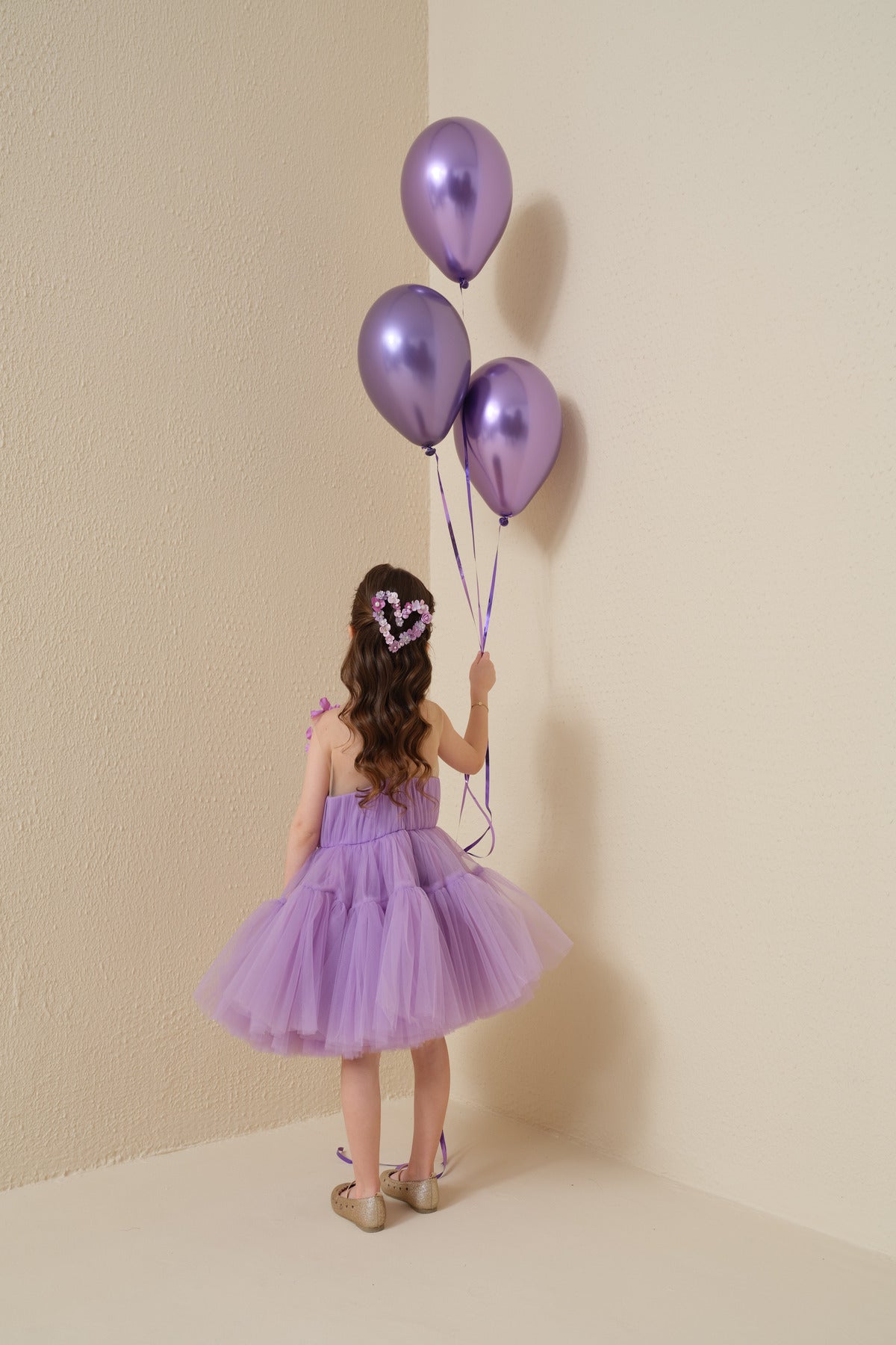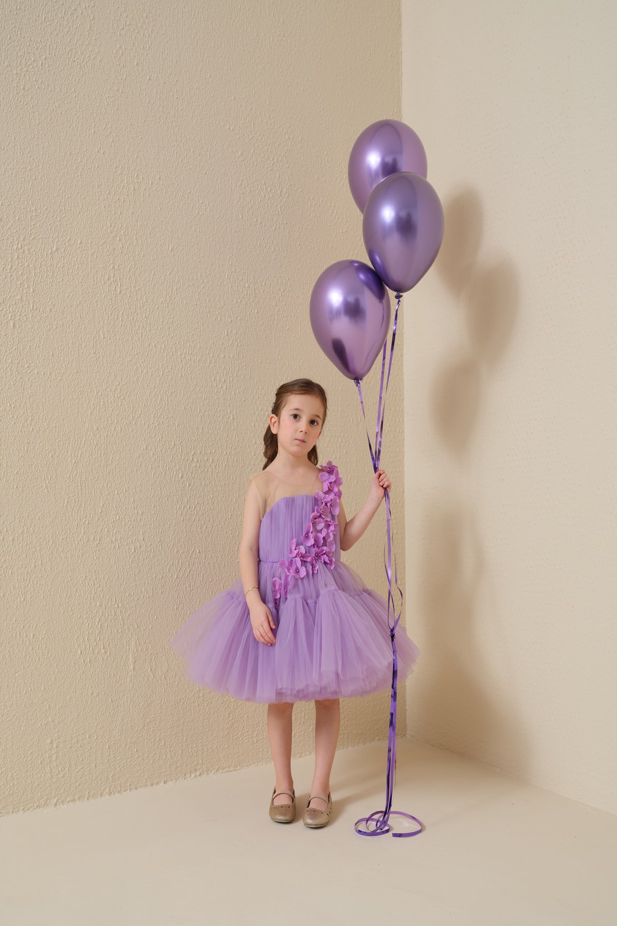 DRAPE VE ÇİÇEK DETAYLI ETEĞİ KABARIK TÜL ELBİSE
