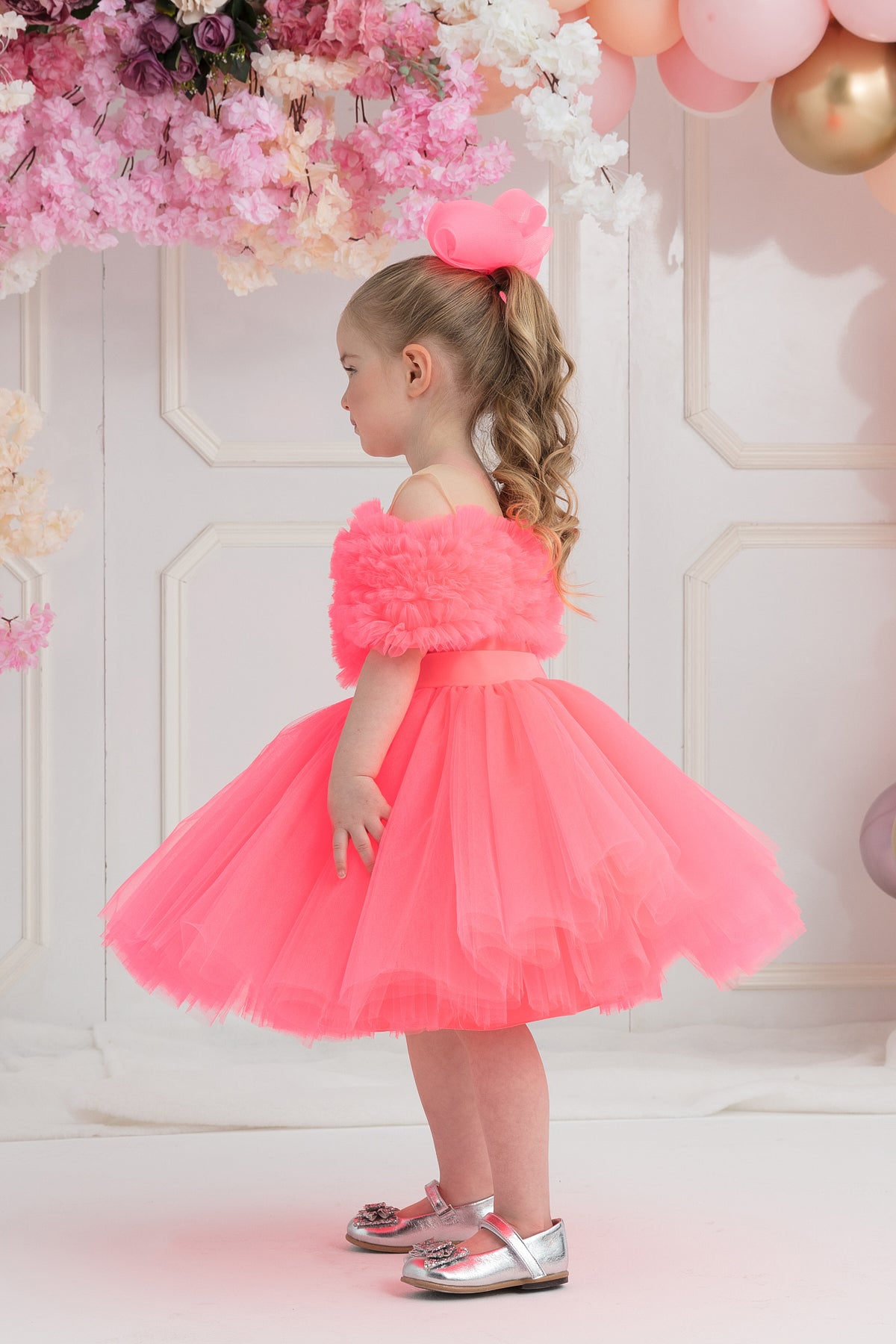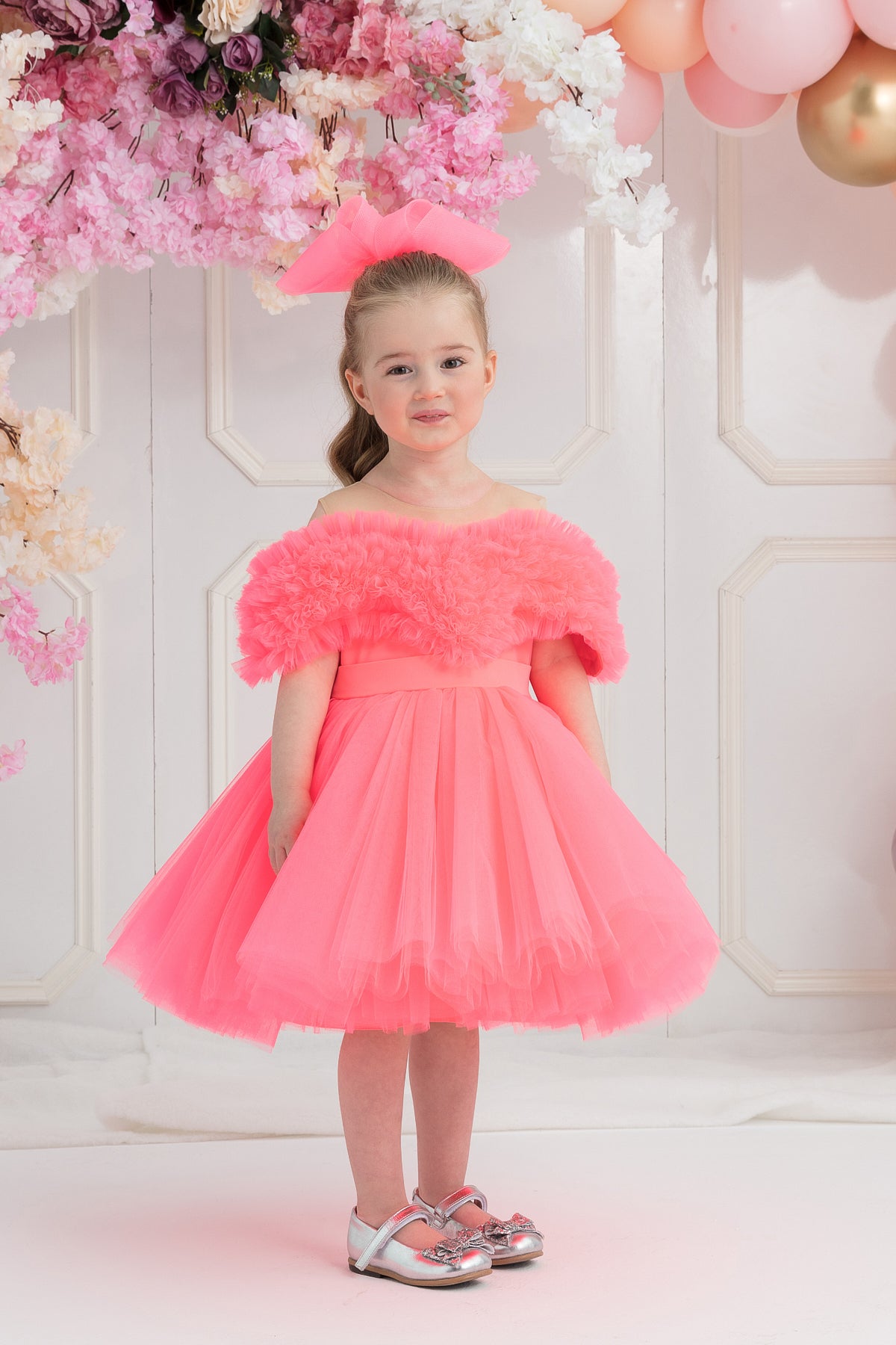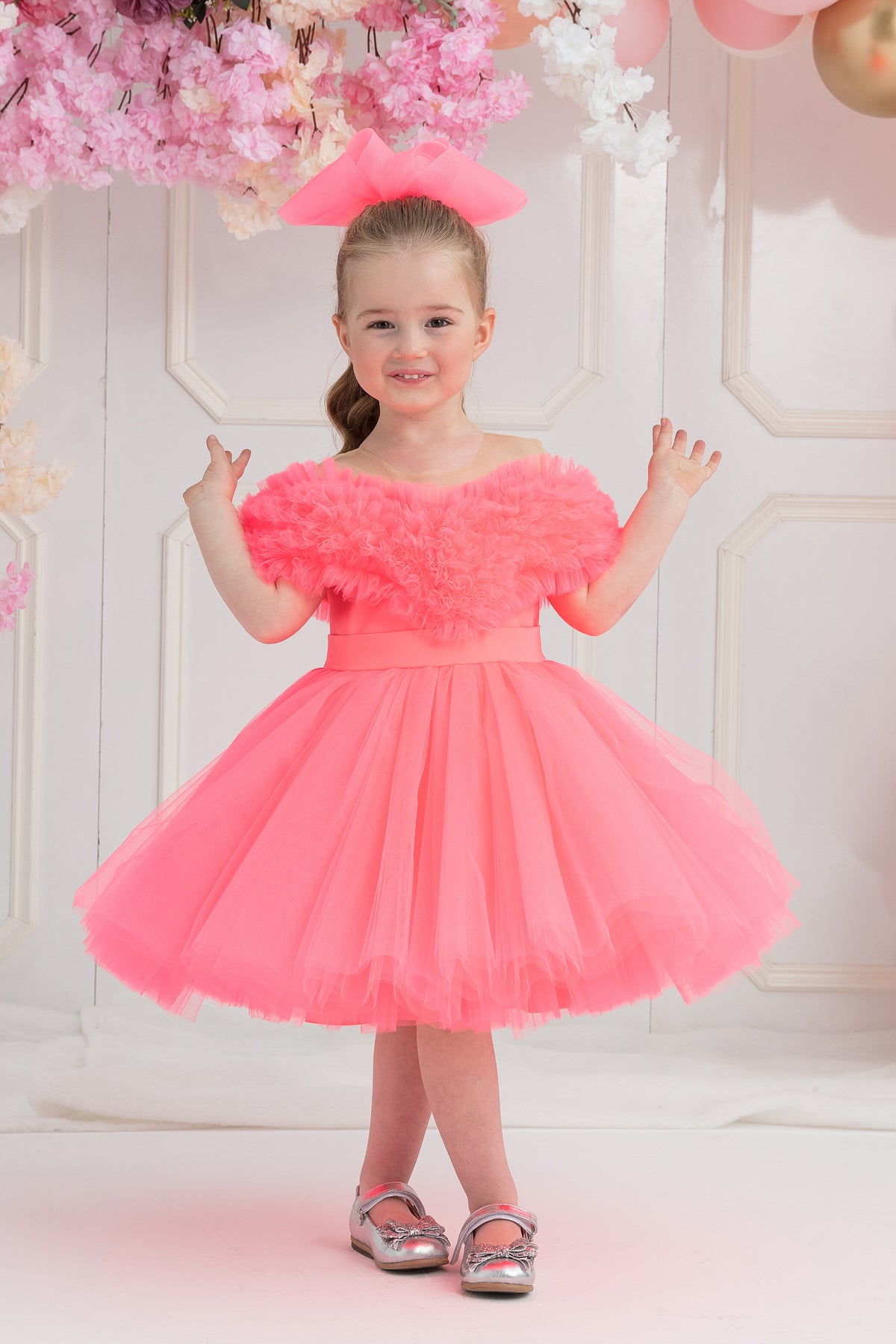 Fırfırlı Kalp Yaka Elbise