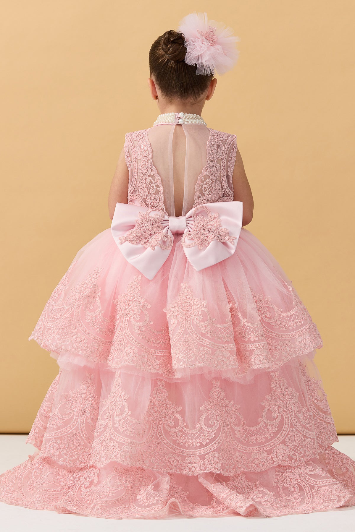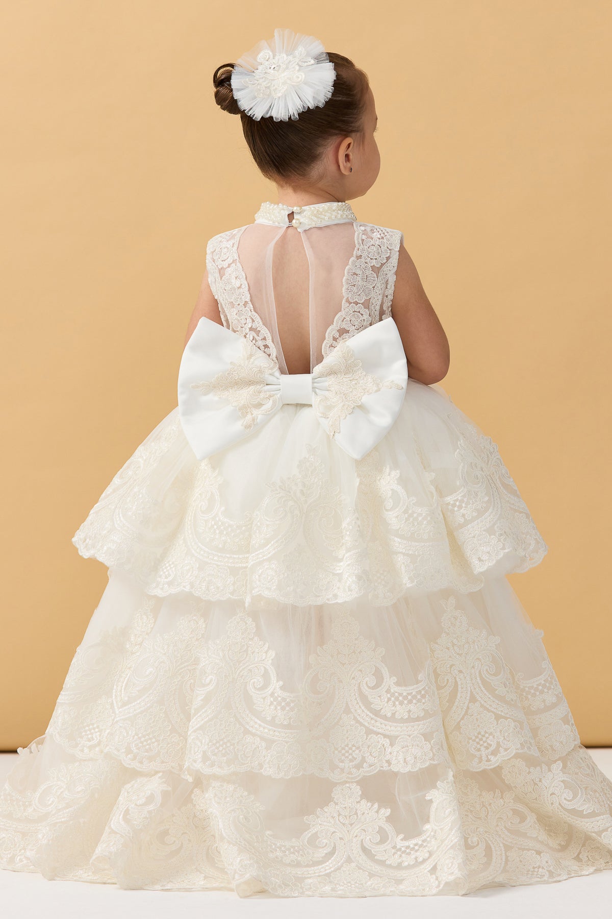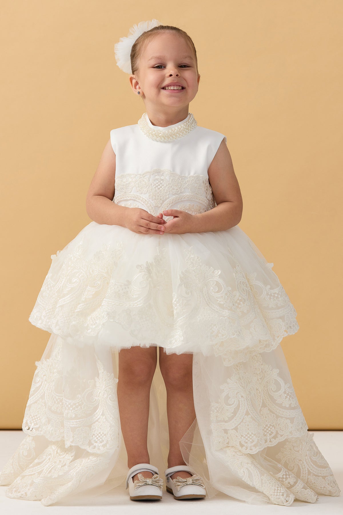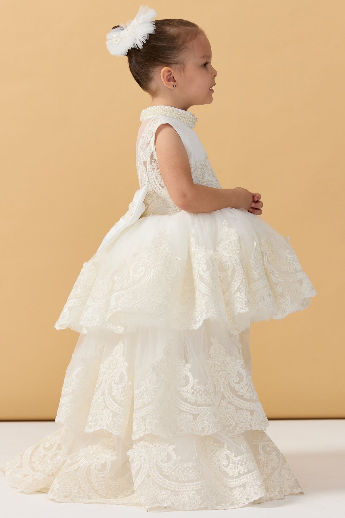 GÜPÜR DANTEL DETAYLI KAT KAT KUYRUKLU ELBİSE