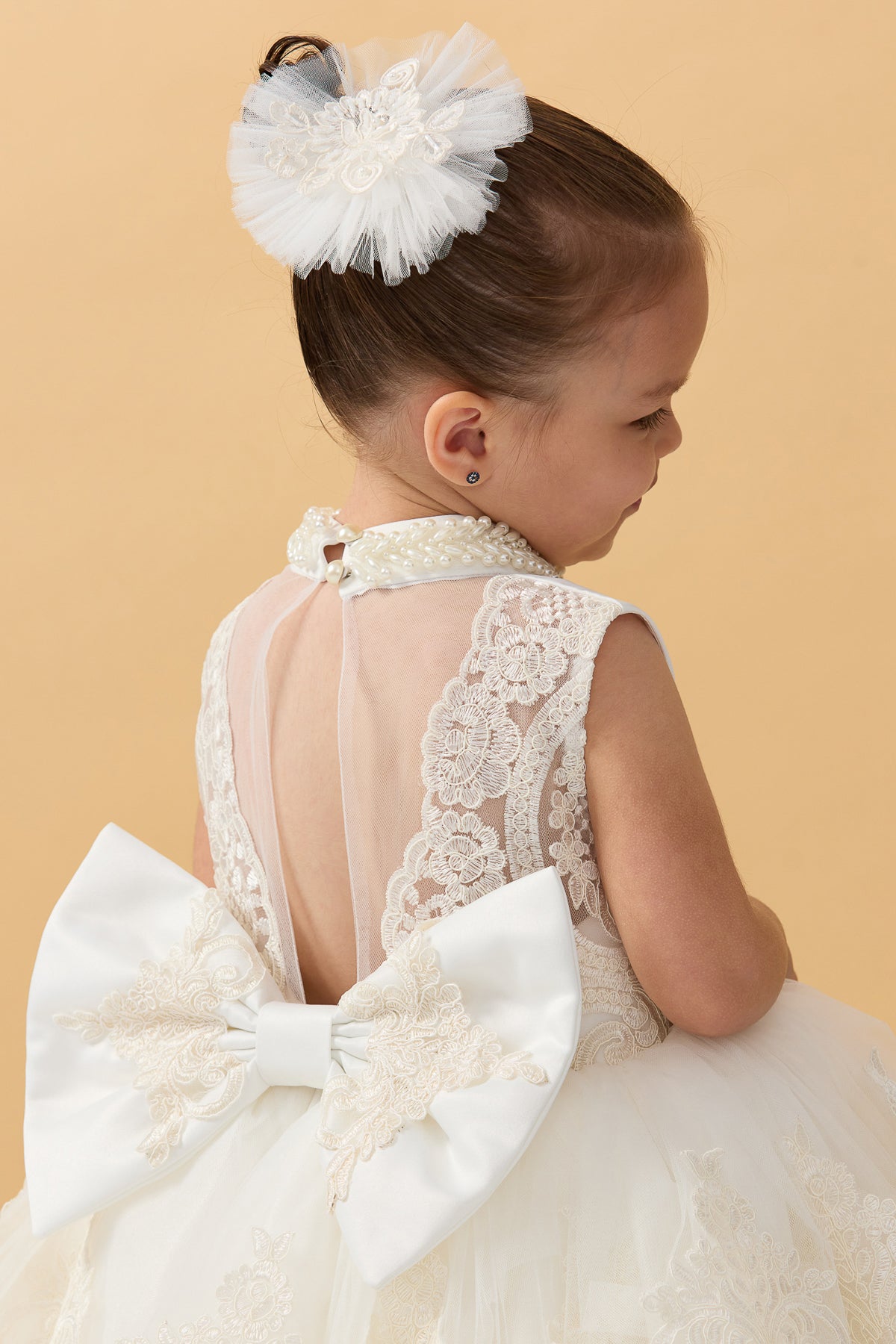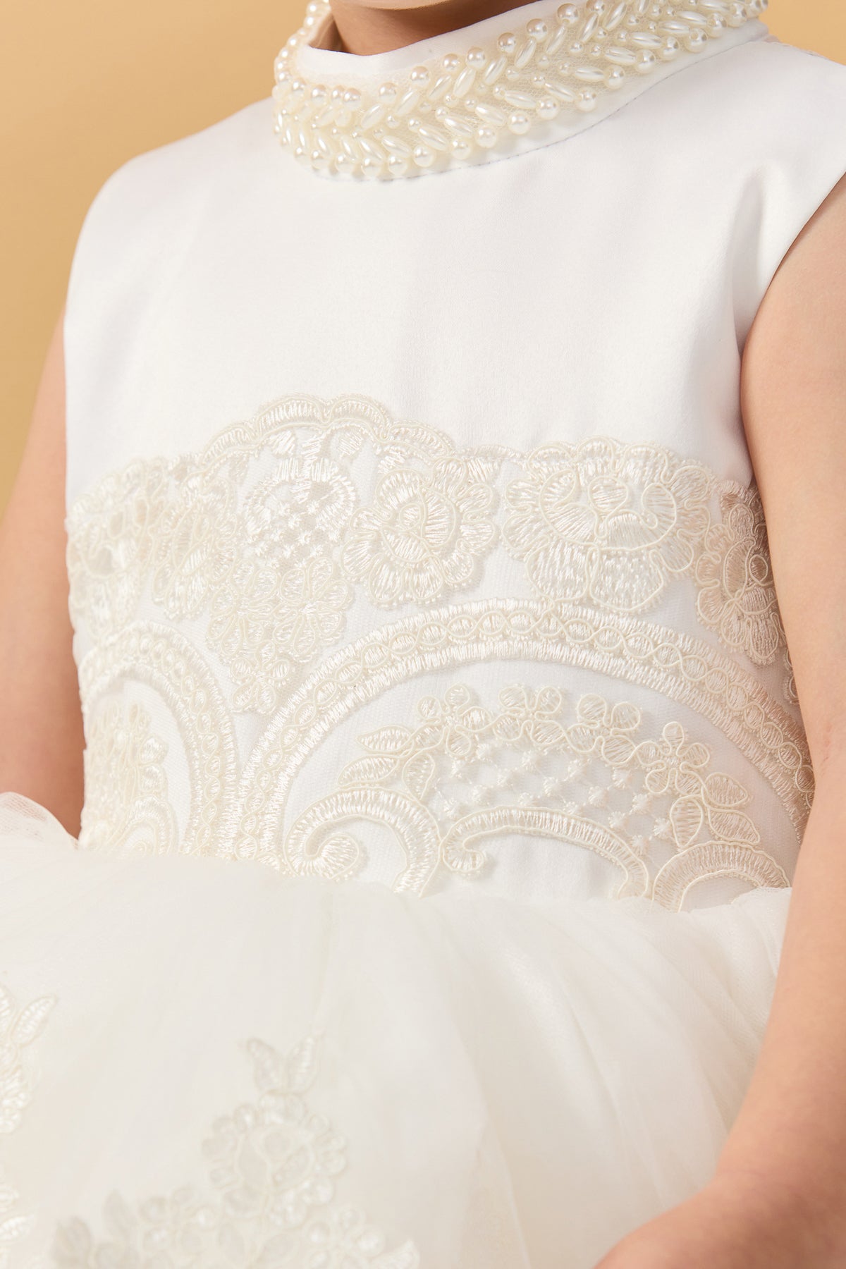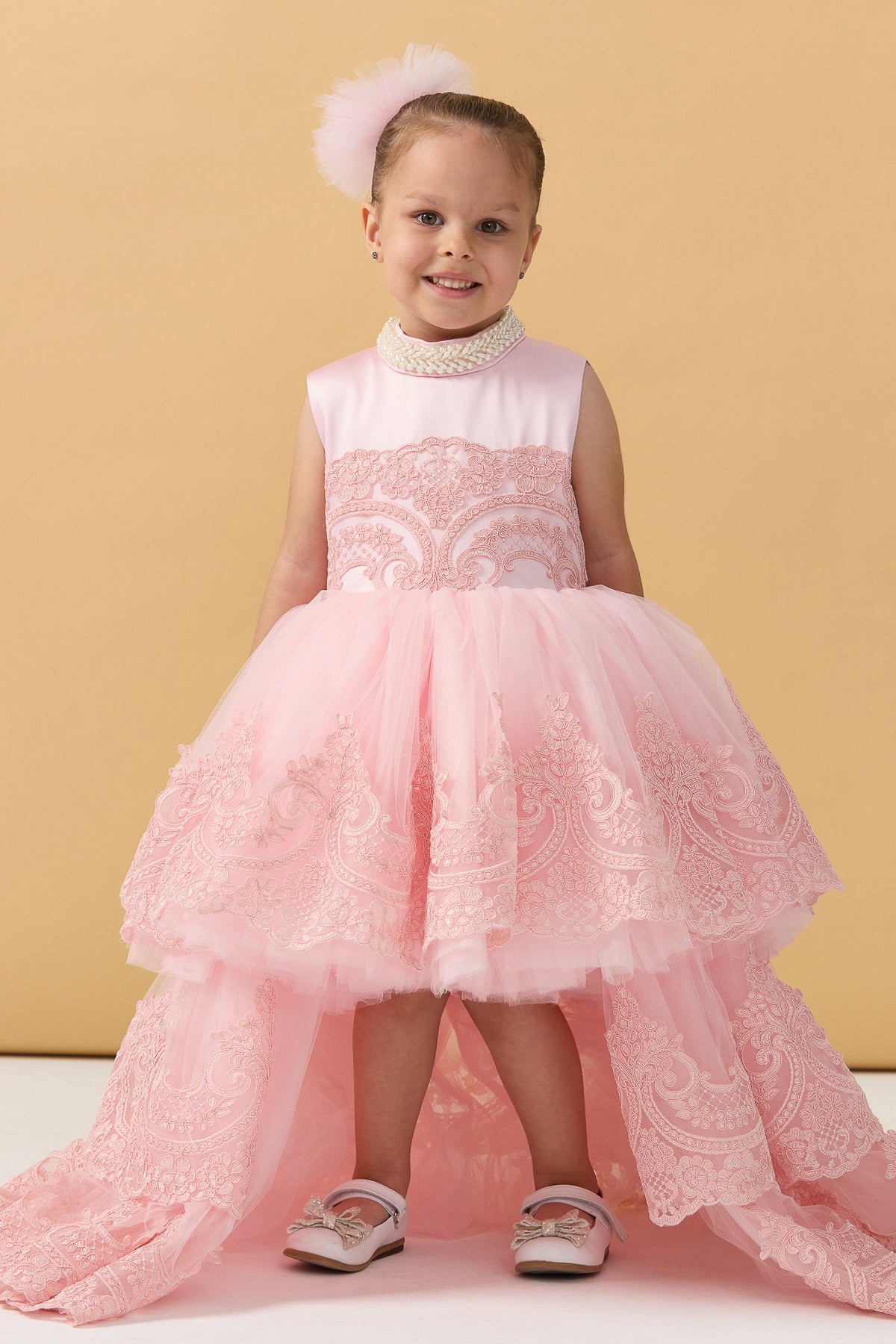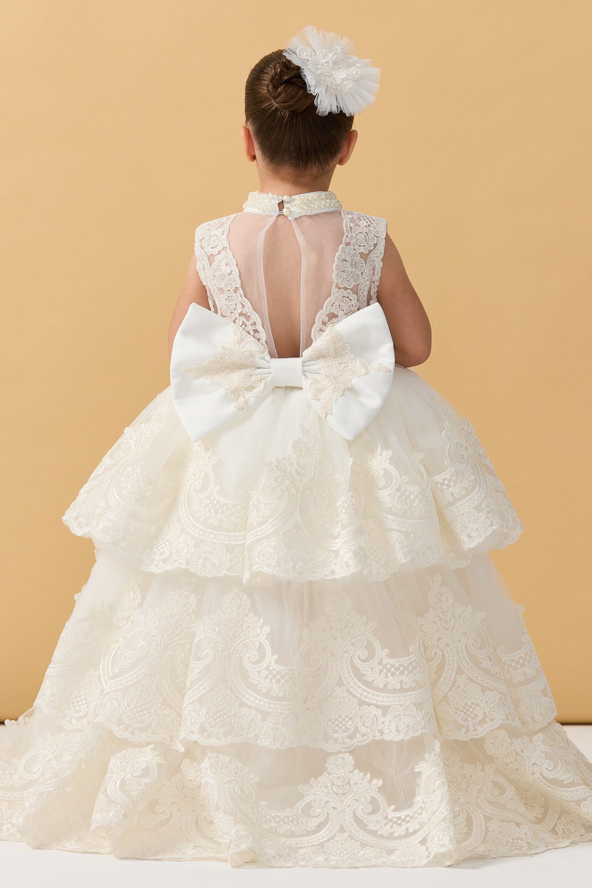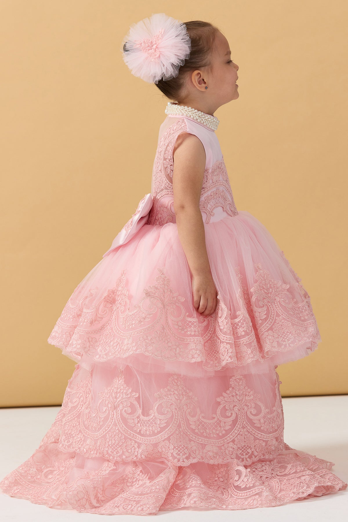 GÜPÜR DANTEL DETAYLI KAT KAT KUYRUKLU ELBİSE
