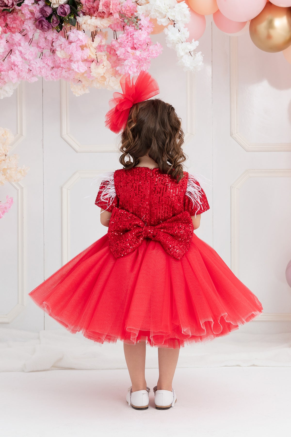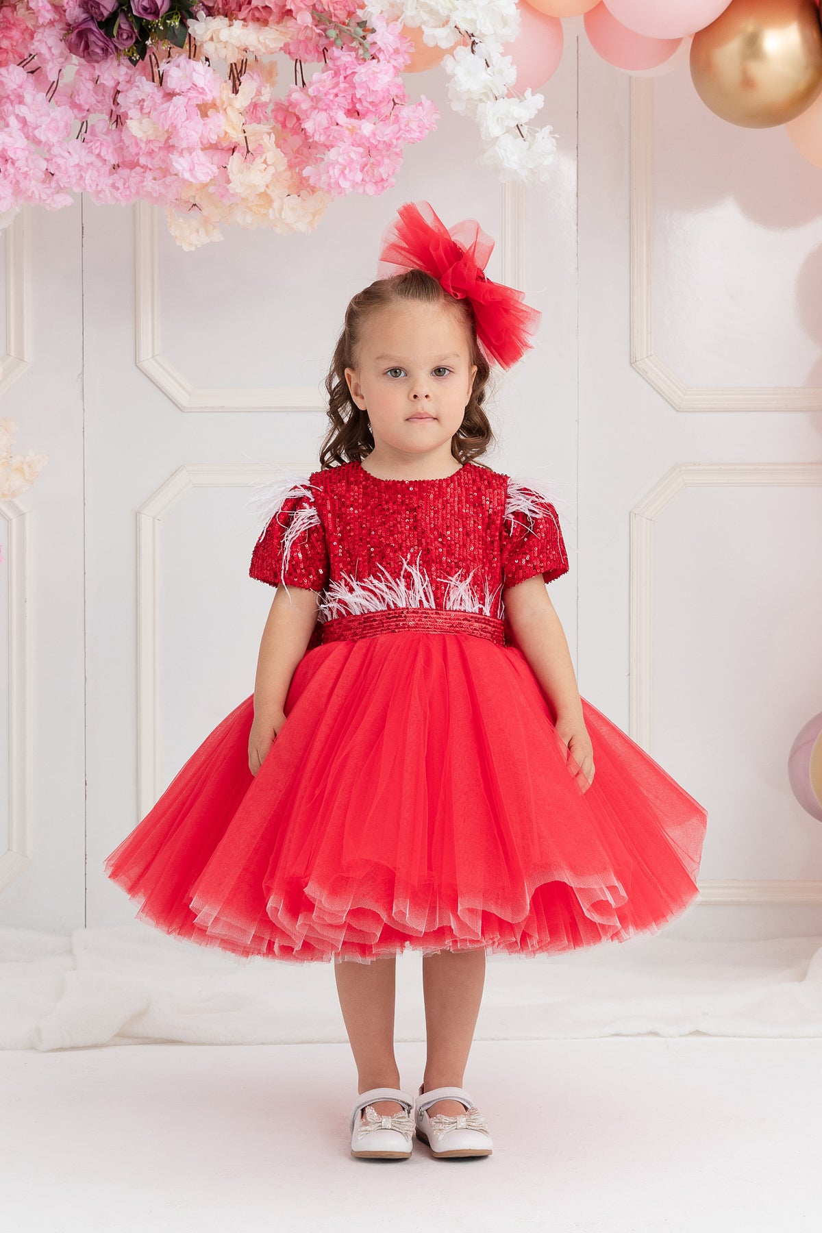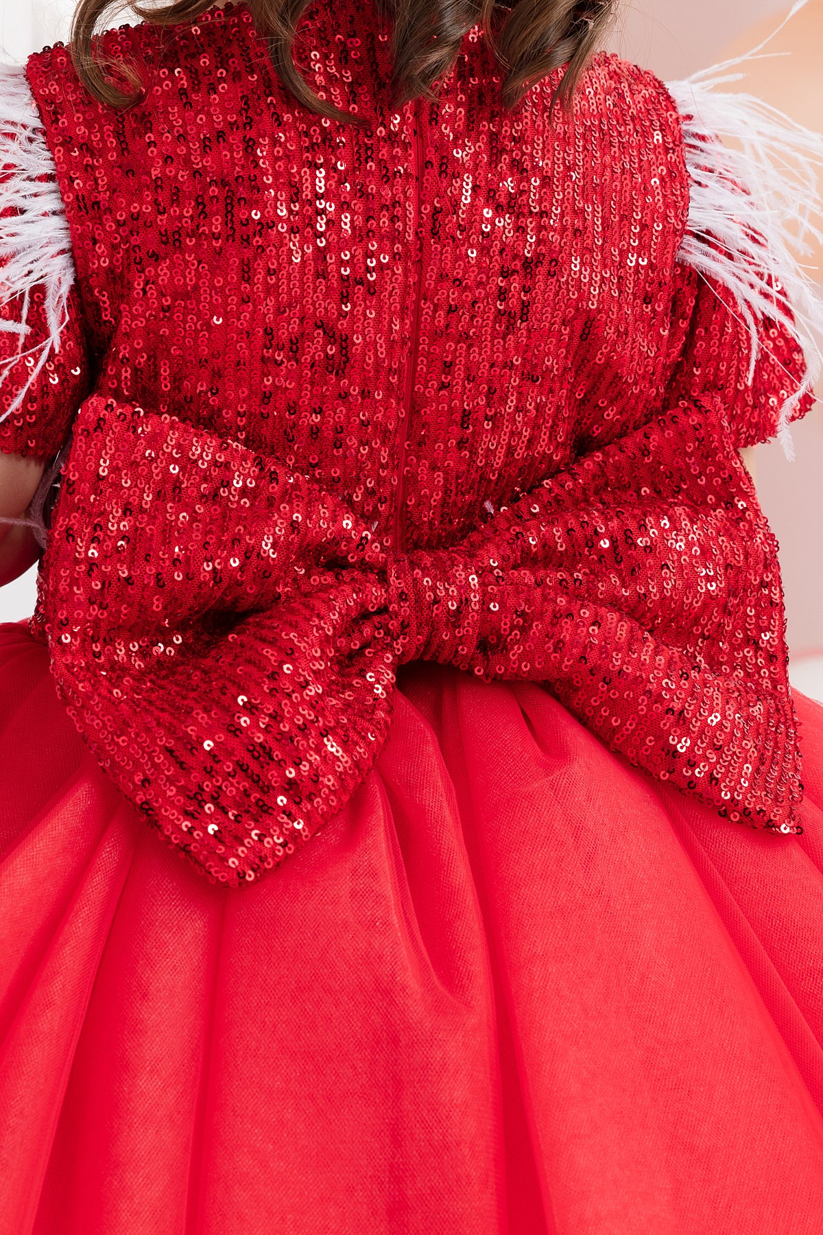 ÜST BEDEN PAYET BELİ TÜYLÜ BELDEN KABARIK KISA TÜL ELBİSE
