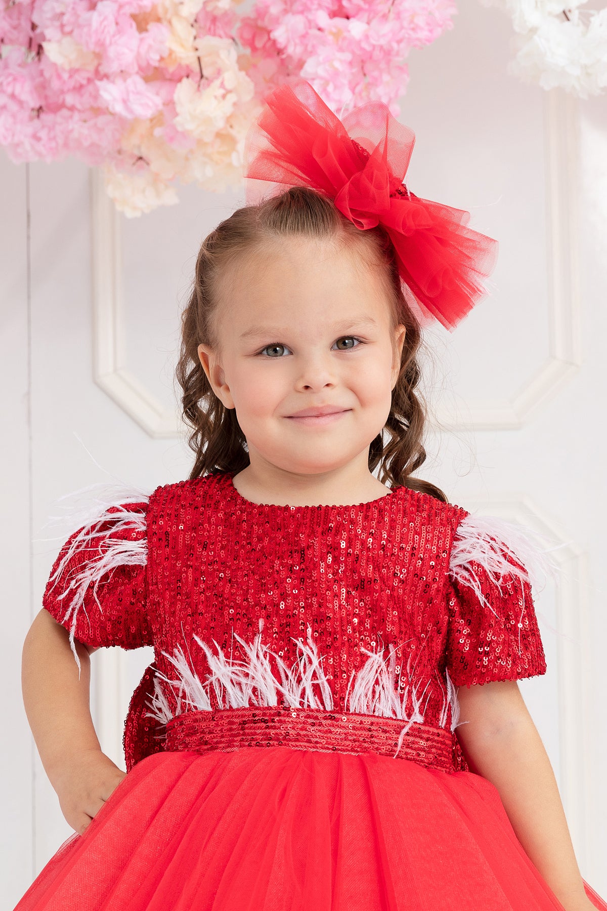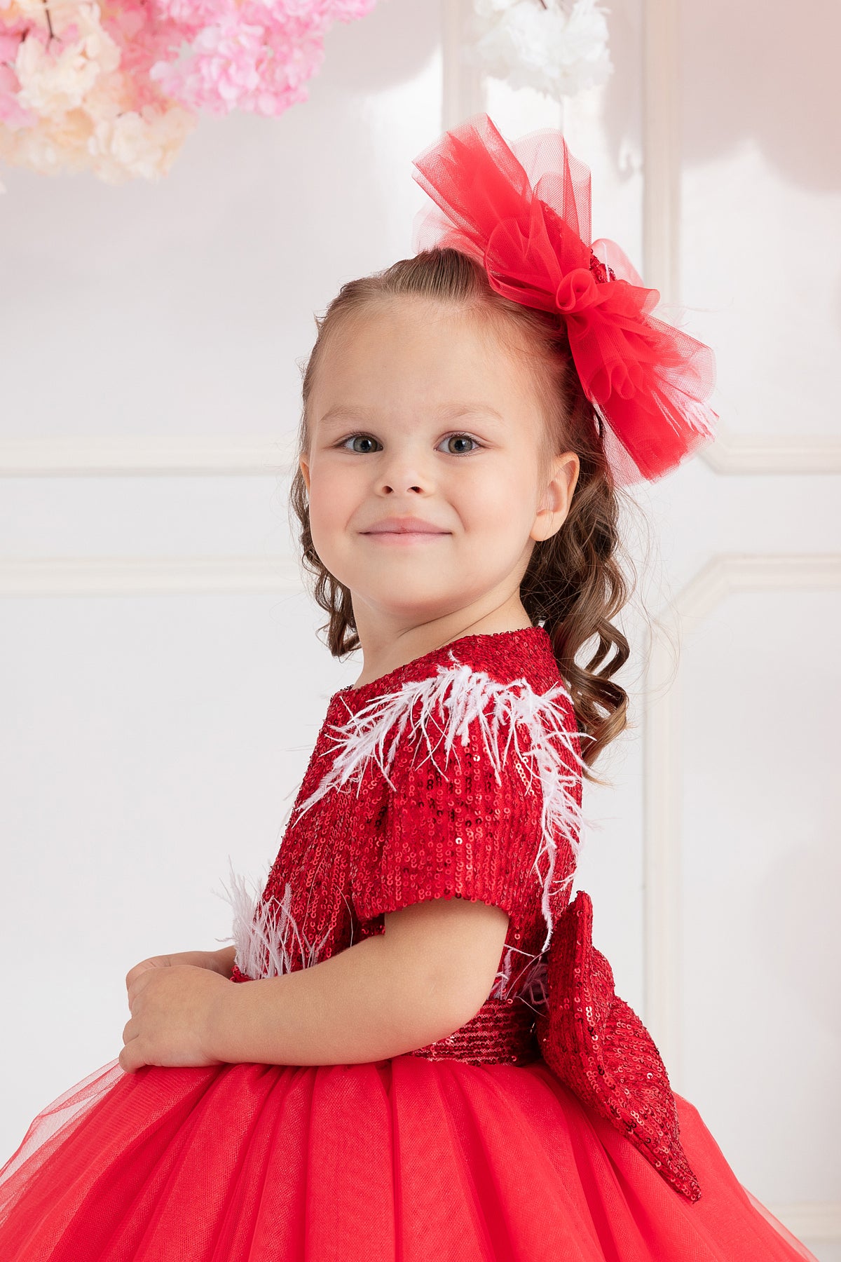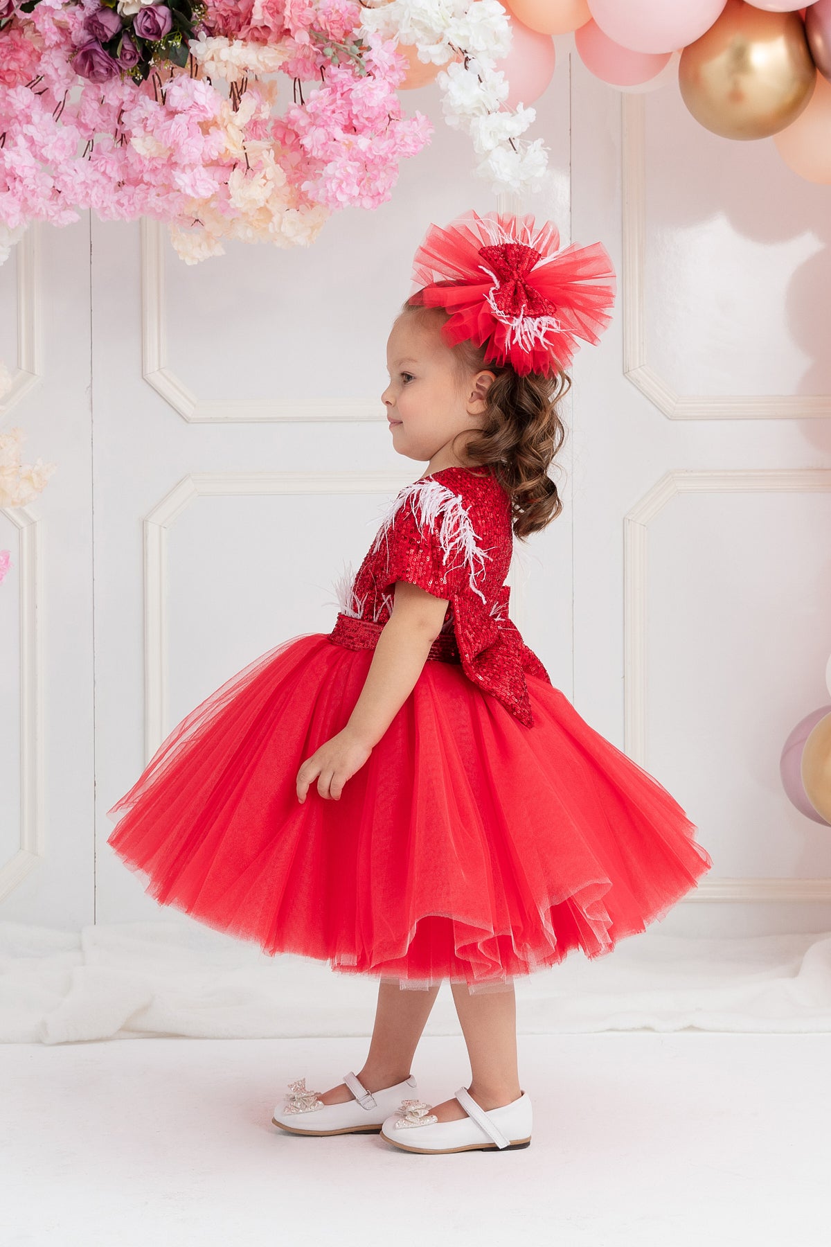 ÜST BEDEN PAYET BELİ TÜYLÜ BELDEN KABARIK KISA TÜL ELBİSE
